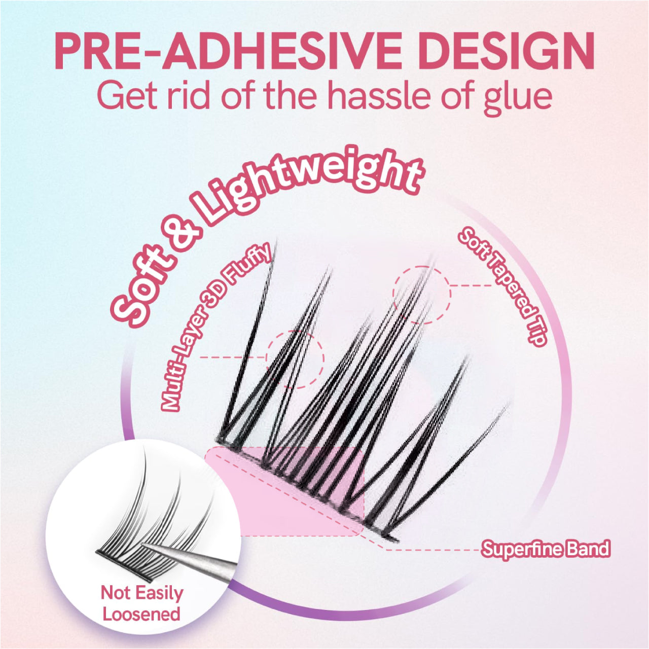 Say goodbye to lash glue and hello to our Self-Adhesive Lash Clusters – the easiest, fastest way to get salon-worthy lashes at home. With innovative self-stick technology, these lash clusters adhere instantly without glue, without mess, and without harming your natural lashes.