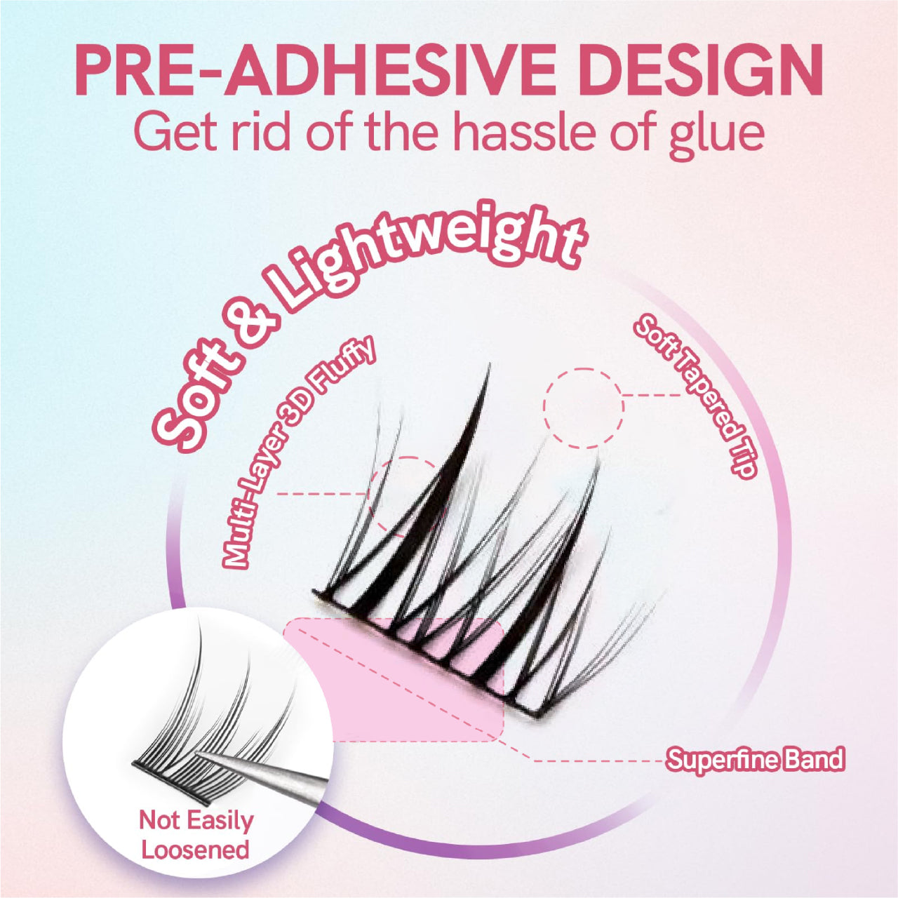 Say goodbye to lash glue and hello to our Self-Adhesive Lash Clusters – the easiest, fastest way to get salon-worthy lashes at home. With innovative self-stick technology, these lash clusters adhere instantly without glue, without mess, and without harming your natural lashes.