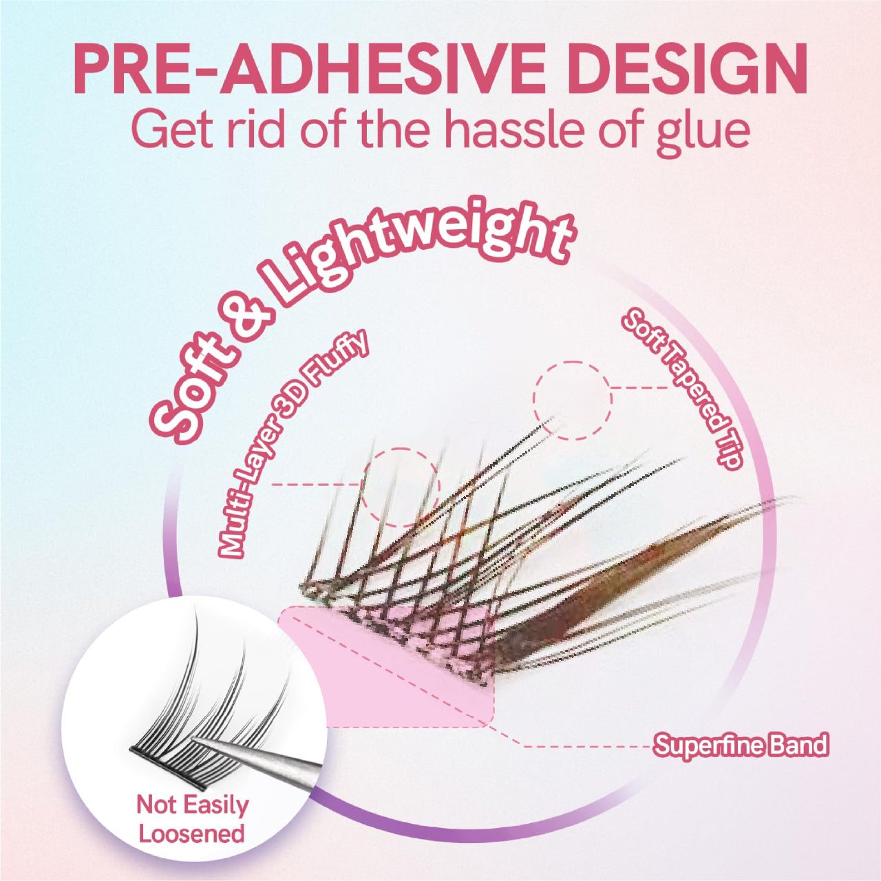 Our exclusive pre-bonded technology makes lash application a breeze. Just pick, place, and press – no dry time, no sticky fingers, no guesswork.