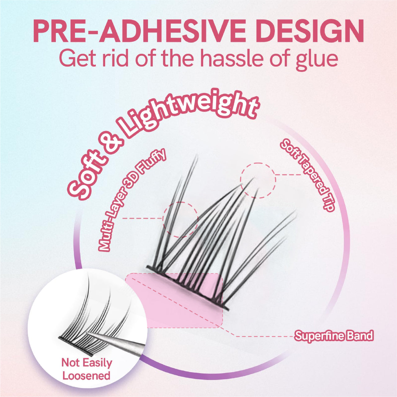 Our exclusive pre-bonded technology makes lash application a breeze. Just pick, place, and press – no dry time, no sticky fingers, no guesswork.